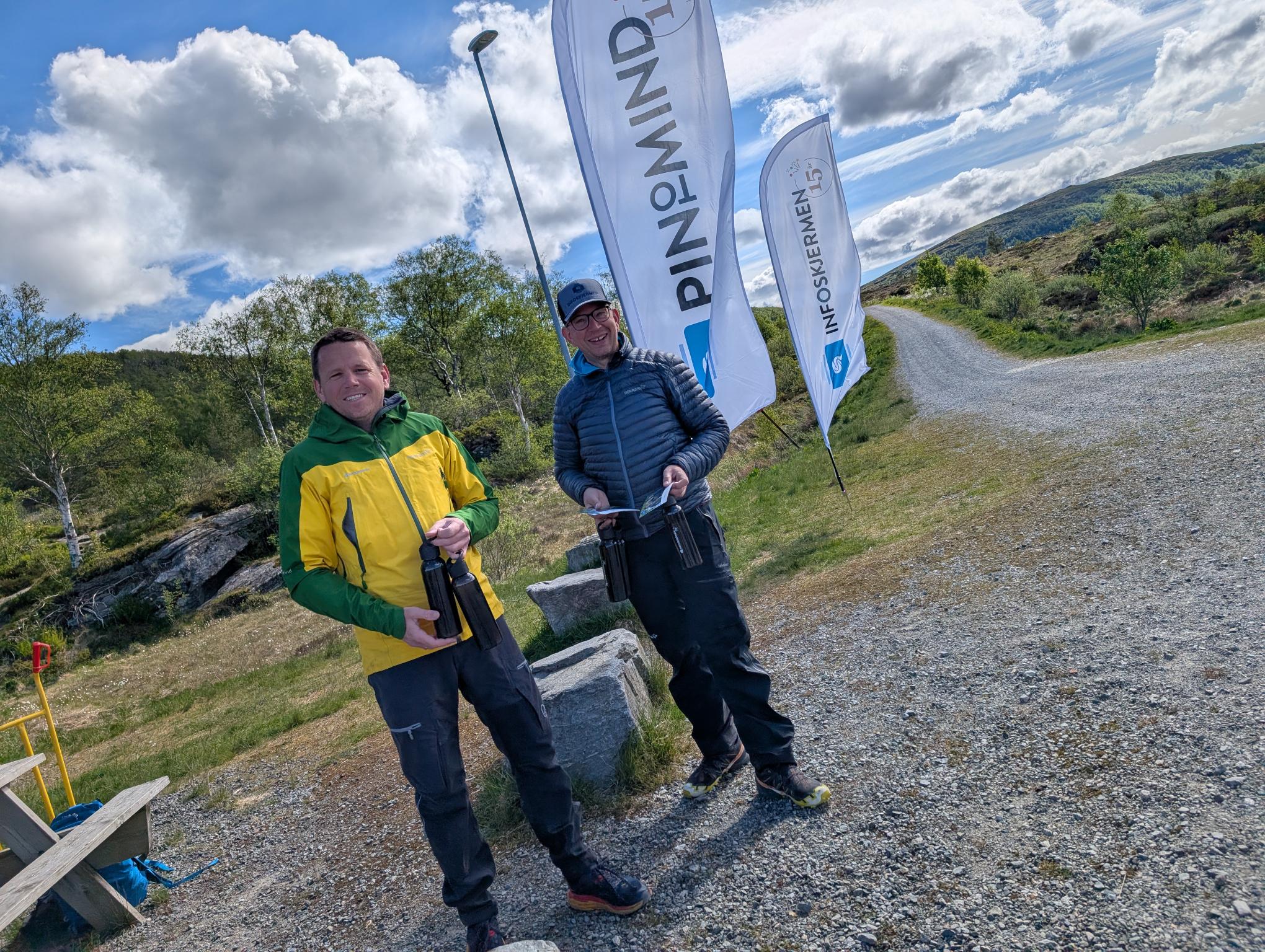 Infoskjermen delte ut flasker langs løypa